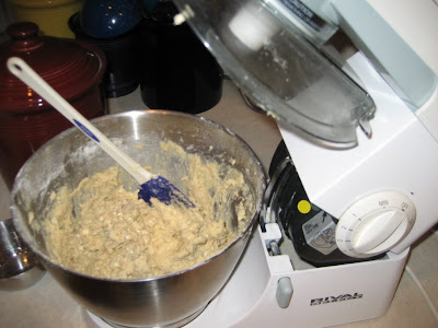 As the boys were unwrapping about 100 Kisses, in 3 flavors shown here, I was preparing the dough. It’s essentially a sugar cookie dough replacing about 40% of the flour with oatmeal.