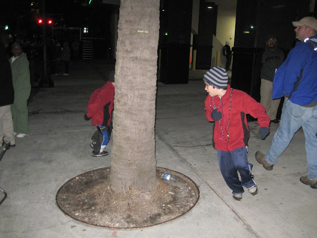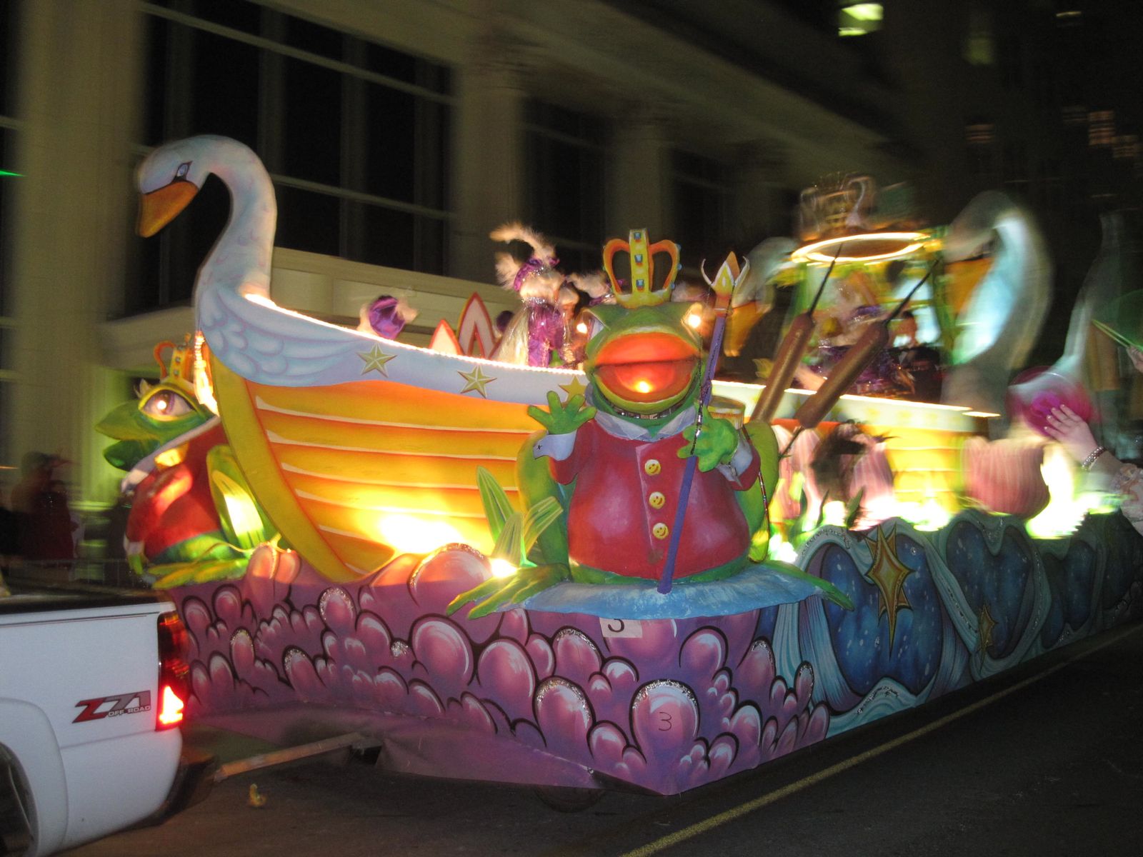 So after church, we went home to change into warmer clothes and headed out. We didn’t know what we were doing. We tossed some snacks into some tote bags, threw some chairs into the back of the car and headed out. During the drive we answered the kids’ questions about Mardi Gras, many of their impressions were based on scenes from Disney’s The Princess and the Frog.