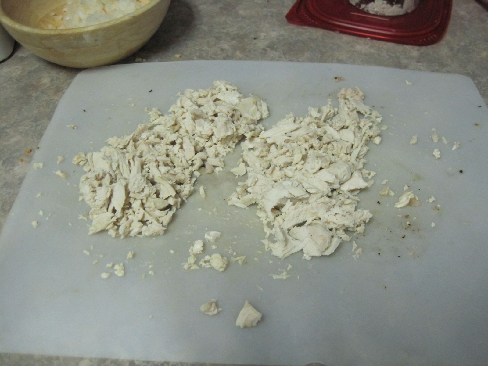 | Cooked chicken breast. I learned a new trick to make preparing cooked chicken for recipes super-dooper easy…see the next caption. |