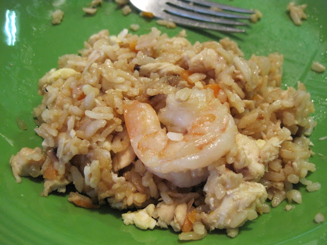 Since today is Saturday, tonight he took the time to make the family the fried rice recipe he enjoys making while I’m on reserve duty. It’s really easy, and you’ll find it isn’t really a recipe, per se. It’s more of a set of ingredients tossed together in a wok or large skillet. It’s a great way to use leftovers!
